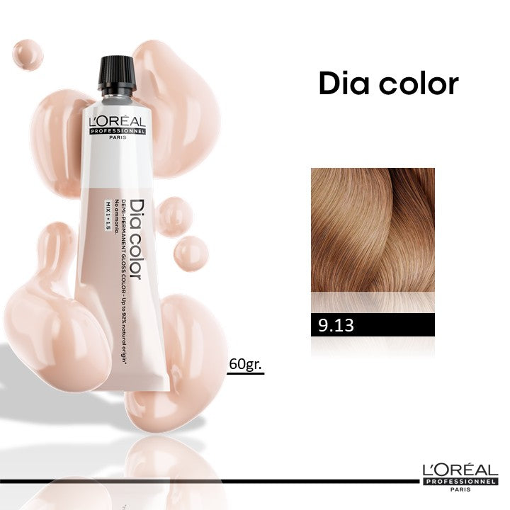 Dia color es una coloración alcalina demi-permanente sin amoniaco para conseguir un color gloss. Revierte los efectos de la pérdida de melanina durante 6 semanas de color gloss* y cubre hasta un 70% de los cabellos blancos. Proporciona x3 más brillo** y reaviva el color del cabello. La textura es en crema para facilitar la mezcla, aplicación y enjuague. Dia color restaura el color y brillo con la tecnología de relleno de la melanina perdida, que replica el color de la melanina y rellena los huecos de melanina perdida. Su fórmula contiene hasta 92% de ingredientes de origen natural***.